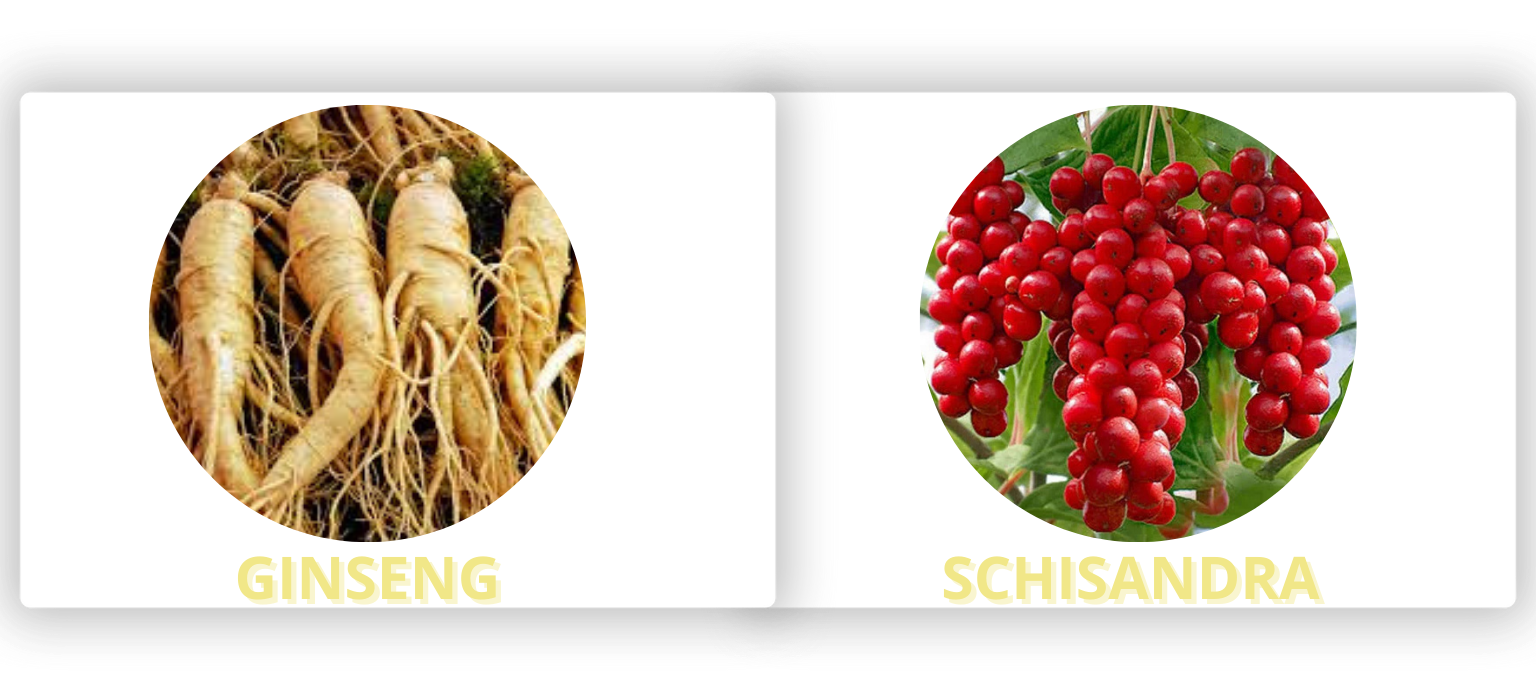 Ginseng (rojo y siberiano) y Schisandra apoyan el rendimiento y la respuesta al estrés.
