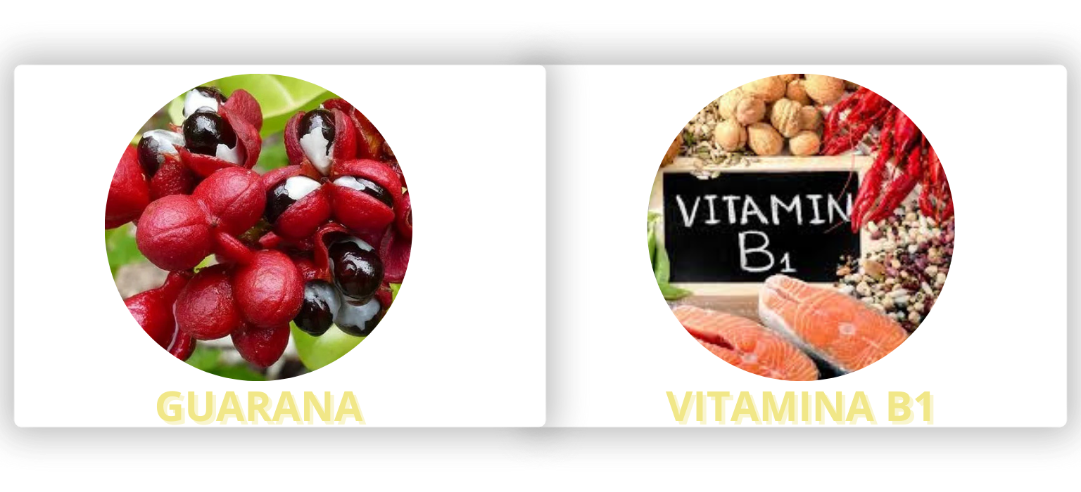 Guaraná + Vitamina B1 contribuyen a la vitalidad sin picos bruscos.