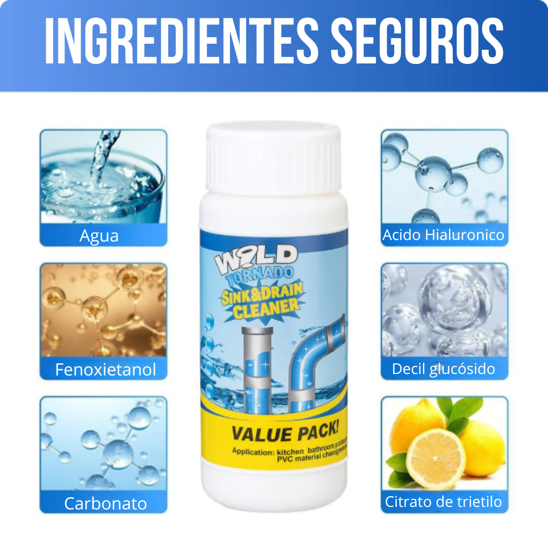 Nuestra fórmula combina enzimas específicas y agentes limpiadores que atacan la suciedad orgánica sin comerse el material del caño. En pocas palabras: disuelve el tapón en lugar de “quemarlo” a lo bruto.